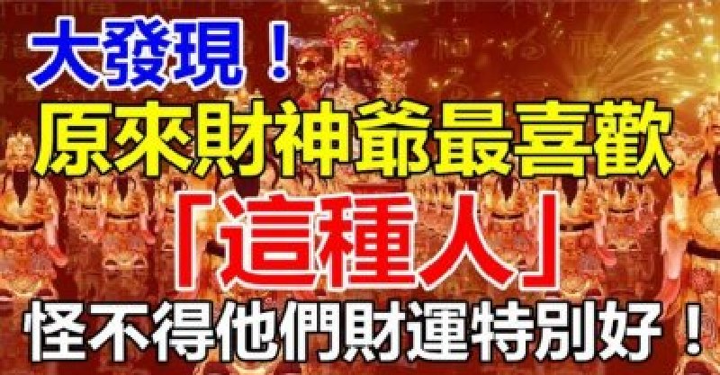 有的朋友也許會說,這是人家命好,得天獨厚。張恕老師認為,命好固然是一個主要原因,但如果你用心留意的話,就會發現,這些得到財神爺特別眷顧的人,往往具有以下特徵: