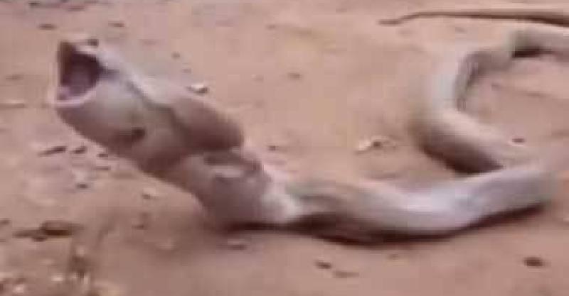 只見眼鏡蛇痛苦的張開了嘴巴,看樣子馬上要吐了!