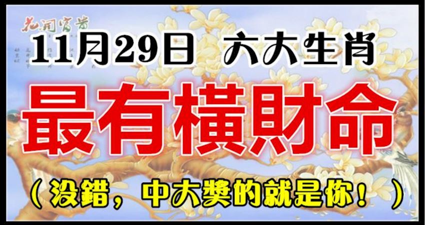 2018年11月29日,最有橫財命的六大生肖,100%靈驗