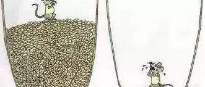 老鼠掉進了半滿的米缸,意外讓它喜不自禁。確定沒有危險後,它便開始了在米缸裏吃了睡、睡了吃的生活。很快,米缸就要見底了,可它終究還是擺脫不了大米的誘惑,繼續留在缸裏。最後,米吃完了,它才發現,跳出去只是夢想,一切都無能為力了。