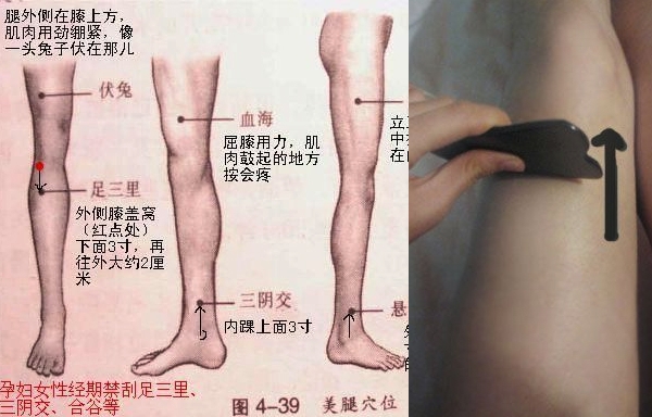 而骨頭明顯的部位,例如:下肢的脛骨前麵,則禁止刮痧。