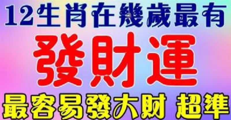 財富是所有人都想得到的,但想要發財,除了靠自己的努力,也要天時地利,有好的機會,加上自身努力,才能累積財富。今天告訴你,12生肖經過平時的努力累積,最有機會在幾歲收割、發財致富吧!十二生肖會在幾歲發財