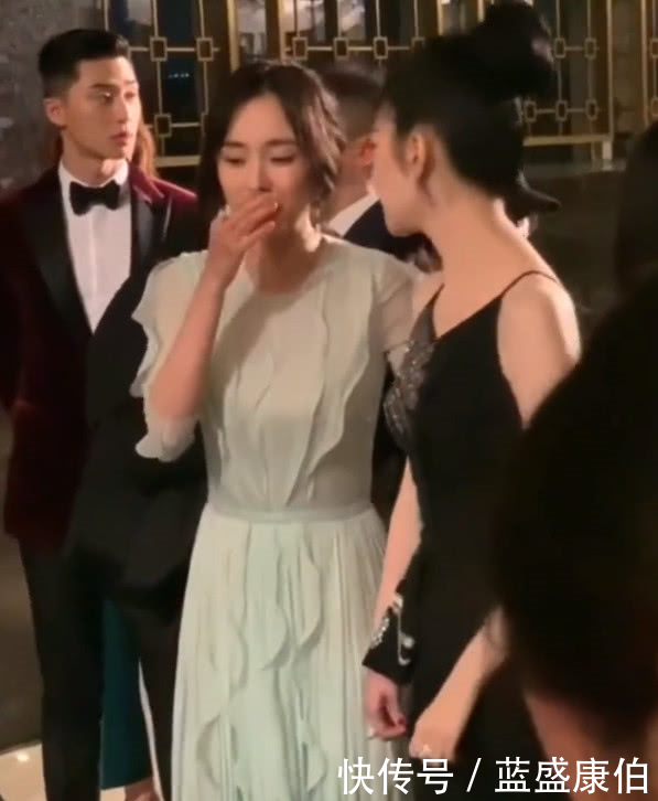 當時景甜在跟楊冪說話,後來楊冪就知道了,楊冪的動作亮了,當時她用手抱著景甜,看上去很自然的樣子,還有點像是在保護景甜,而景甜看上去就不自然了,一臉尷尬啊!