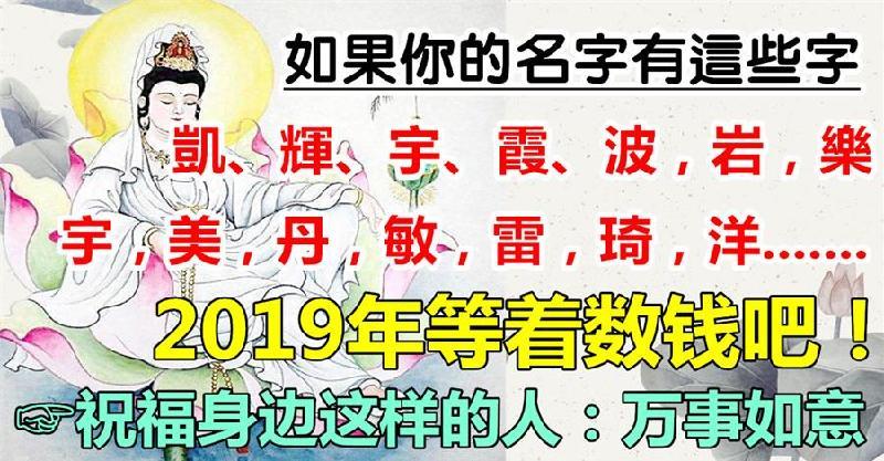 2019會發大財! 凱、輝、宇、霞、波,岩,樂,玉,峰,強,