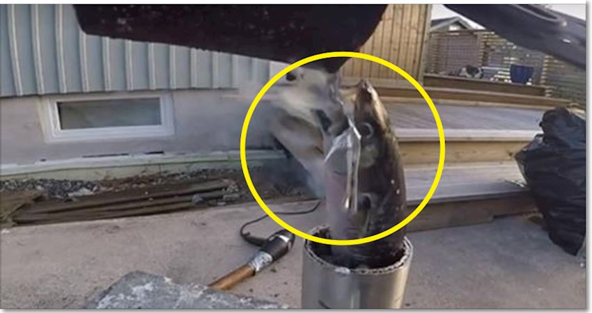 但是根據youtube報導,國外有一名男子把易開罐當作原材料,於是把它們加熱鎔化後變成了鋁水,這時鋁液體的溫度接近700度,然後男子就要把這麼高溫的鋁液倒入魚口中囉!