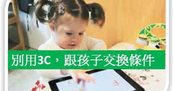 交換條件,也是教養中大家常用的方法,常用的原因不外乎是"方便、快速、又有效"。 但孩子的心智畢竟還在成熟當中,我們擔心孩子反而被這些誘惑物強化,而觀察不到爸爸媽媽教養的焦點。例如:你乖乖坐餐椅吃飯,我等會就給你一塊蛋糕。這樣教,讓孩子失去觀察自己餐盤裡食物的內容,強化蛋糕的重要性;你不要亂跑,我就給你手機平板,當孩子沒有手機平板時,你就會變的控製不了他,孩子被賄賂物強化,而不能發展出自律的能力。交換條件的教養,不是不行,而是要少用,更不能讓孩子養成習慣來談判。 我最怕在外面聽到,"你如果不哭,我就給你玩手機!","你如果乖乖吃,我就給你看影片"。這些話,會讓孩子越來越用這些3C來交換條件,偶一為之是無傷大雅,但常常這樣,一定會傷害孩子的心智發展,例如:(1)情緒穩定度變差,哭鬧不休(2)手指精細協調變差,變得不會翻書,有時更進階變成沒有耐心操作玩具(3)溝通能力變差,不喜歡與人交談(4)跑跑跳跳及平衡的能力變差(5)玩遊戲的專注力也變弱。各位家長,千萬別讓S世代的孩子,腦部及心智過度刺激了! 假日中午的餐廳內,四對父母帶來的孩子坐在同一桌,大人聊得起勁,四個八至十歲的男孩,有兩個在玩iPhone,一個在看iPad,還有一個發呆等餐點。