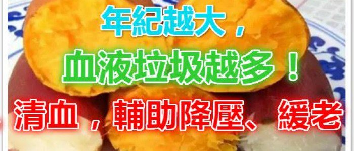 因此,血液裏的垃圾要常去清理。清理血液垃圾的方式很多,其中飲食清理法最簡單實用,所以不妨多吃些紅薯,它能有效幫助清血,延緩衰老。