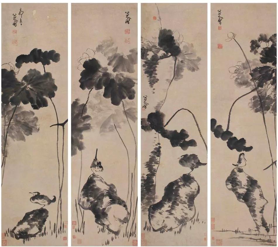 八大山人的花鳥畫運用水墨的質感和層次變化來形成視覺的層次與畫面的肌理,水墨的質感和質感變化所形成的層次不窮的肌理,創造出渾然一體的生動氣韻。