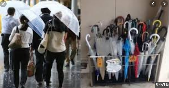 △日本商場、超市、咖啡店、便利店的入口處,幾乎全部都是長柄雨傘。