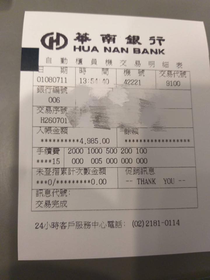 不過後來有眼尖網友從明細單上發現真相:「這人真的是打算還5000,但他可能沒想到『跨行』存款會有手續費內扣的問題。我想他應該沒有故意摳手續費的意圖,只是當初應該去找跟債主帳號銀行的櫃員機才對」、「無心之過吧,他放五張一千元進ATM匯給你,當然扣在現金,ATM總不可能存5015元吧,可能是急著還錢,我認為這朋友可以交」