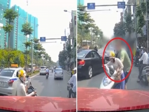 這個舉動讓老外徹底暴怒,決定親自幫女子催機車油門,試圖幫女子將車子騎到路邊,但女子似乎把煞車給按住,導致機車沒有辦法移動。