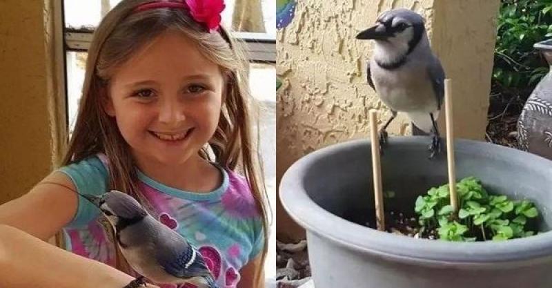 是Dina和一隻冠藍鴉。