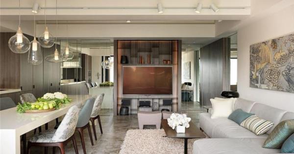 屋主為一對夫妻加上三個小孩,來自澎湖的他們,吹風,看天、看綠地是最愜意的時刻。案例地點位於民生社區,居住環境清幽且綠茵環繞,更切合了屋主對於新家的風格,他們的需求是和自然連結,臥房不用太大,客廳要大,要開放。 找到一座陽台,回歸田園城市風光 設計師以「回歸田園城市」為設計主題,將原始被外推的陽台回復,將小兒子房的專屬陽台讓出空間和前陽台連成一長條,並在此規劃整排的長椅及透明女兒牆,透明的女兒牆讓室內外界線更加模糊。室內空間在餐廳、客廳兩側使用大面鏡子,隱藏通往臥房的房門,減少視覺的切割,除此之外明鏡映射了公園綠樹,創造出前後都有公園綠蔭的氛圍、也同時達到室內寬敞通透的效果。  為了達到室內寬敞通透的效果以及呼應公園直立的樹幹,在客廳和餐廳的空間使用大面的明鏡,並輔以分割線條,成功的隱藏了通往臥房的房門。  落地窗將美景盡收眼底 客廳原規劃設計為一片大片的固定玻璃加一片可進出的小片推窗,但是屋主想要大面的開敞開口,讓陽台和室內可以融為一體;所以規劃了三大片落地窗並可收到最左邊,但工程廠商擔心大面落地窗的載重及增加軌道問題,經過與廠商多次溝通協調,最終總算克服相關難題。 舊有格局變更後,陰暗的小衛浴成了儲藏室,一旁的原有臥房規劃為客浴加工作陽台,將陽台的光線與通風引入浴室。主臥貼近後方無景觀的位置,因此利用屋主種植的小盆景引進綠意。
