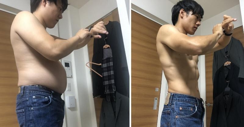 這名網友名叫柊せんせー,他表示自己本來有著大大的肚楠,不過在沒有上健身房的情況下,經過五個月的獨特運動法之後,竟然變身為超狂的肌肉猛男!