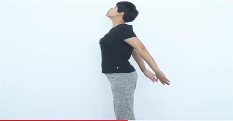 3.吸氣,挺胸朝天,頭部放鬆,保持呼吸自然。
