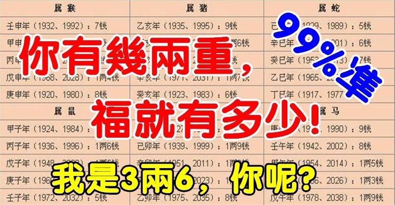 根據以上公式,對照下麵的骨重表你可以給自己和朋友算命啦!