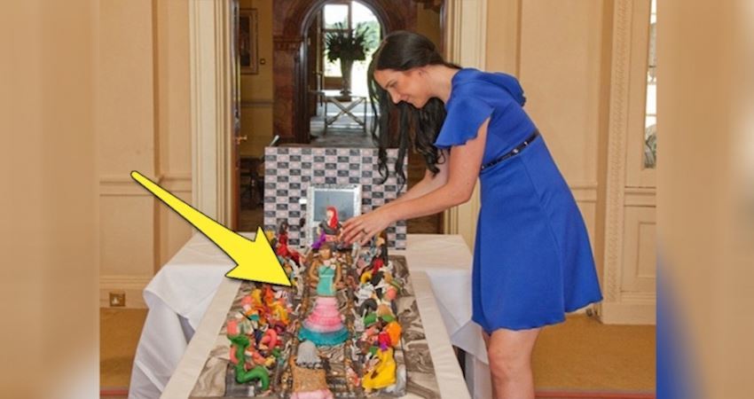 ▼拉近一看,這個蛋糕式設計成一場時尚伸展台的表演,上麵擺滿了十幾個人物,但是仔細端詳發現這些捏麵人的長相都非常古怪,