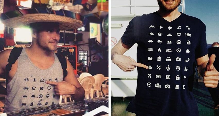 在國外旅行,最擔心的就是語言問題。無法溝通的話,遇到困難都不知道該如何求助。最近,國外團隊設計了一款名為「IconSpeak」的T恤,上麵印著40個常用的可識別圖標,不管你走到哪裡,遇到任何問題,只要指一下,別人就能理解你的意思。