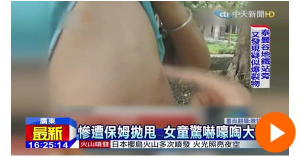 1歲半女童尿床 陸保姆竟高舉拋甩 觀看人數:43