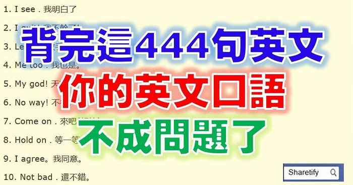 有人說,想學好英文者,先把這444句簡短英語學會!(真的嗎?試試看吧!)