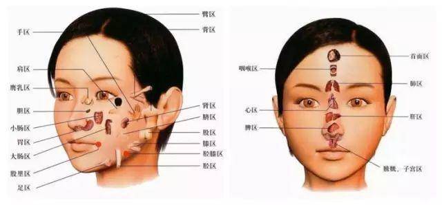 【特徵1】兩眼兩眉中間、鼻子根部的區域為心肺區,若出現點狀或成片狀、大小如小米的深褐色斑痕,則說明心、肺長了老年斑。
