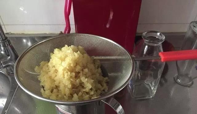 步驟5:關火後,準備一個過濾的篩子,把薑末過濾出去,煮好的水保留。