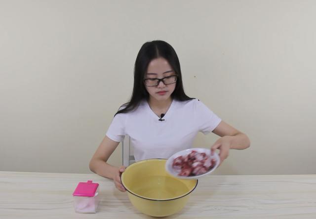 溫水可以去油,鹽能減少肉表麵的細菌,通過食鹽溶化清洗,裡麵的血水會自動跑出來。