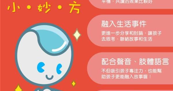 1-3 歲的孩子: 探索、重複閱讀期  孩子的偏好及發展: 這個時期的孩子已開始具有行走的能力,喜歡四處探索,對自己生活四周的事物會有興趣,也開始認識物品命名的方式,是獲得字彙的時期。這個時期的孩子開始將所聽到的、或是在書中所學的應用在語言上,並且會重複嘗試發音,講出正確的語句。 父母共讀的小技巧: 在父母共讀的時候,建議重複語句,讓孩子熟悉這些名詞的說法,如果孩子有興趣,也多給孩子說故事的機會,比方說: 公雞怎麼叫呢? 孩子可回答: 咕咕咕~ 讓孩子有機會回應,練習口語發展同時提升孩子的字彙的能力喔~ 選書技巧: 選擇內容結構簡單、情節一直重複的生活故事,或是選擇有聲韻練習的口語書籍。在顏色選擇上,也可以選擇較為鮮豔的顏色。這個時期的孩子開始探索,如果有一個引導的角色,教孩子去認識生活四周,也是個很好的故事情節。 3-5 歲的孩子: 好奇閱讀期  孩子的偏好及發展: 這個時期的孩子常以自我為中心,喜歡藉由故事情節聯想到自我本身。他們對周遭的事物充滿好奇,喜歡問為什麼,充滿求知慾,會探索並且找尋答案,也開始會傾聽尋求知識。 父母共讀的小技巧: 在父母與孩子共讀的時候,建議可以將故事情節轉到孩子身上,比方說: 如果你是小紅帽,你會怎麼做呢? 這個時期的孩子常常會以自我為中心,因此主角轉到孩子身上,讓孩子能透過故事去反思;另外,這個時期的孩子喜歡問為什麼,因此故事也盡量可以滿足孩子的好奇心,比方說: 為什麼小紅帽奶奶的牙齒變這麼長呢? 以孩子自我角色出發,並提供問題去讓孩子回答及發問,滿足孩子這個時期的好奇感。 選書技巧: 孩子對熟知的事物和動物故事有所偏好,可挑選有關孩子作息的故事,如刷牙、吃飯、上廁所,或選擇以動物為角色的簡短故事。說故事時,可運用動物的叫聲及反覆出現的字句,提高孩子的興趣。