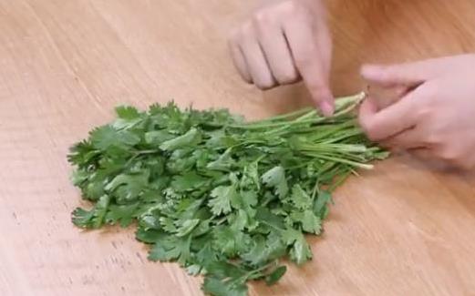 首先我們將買回來的的香菜的老葉和根摘掉(註:摘掉之後切記不要去洗香菜,摘掉即可)