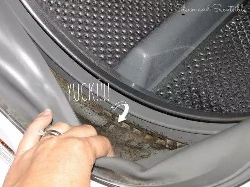 膠皮層也是經常被忽略的位置,掰開洗衣機的膠皮層,你會發現裡麵有一層汙垢。