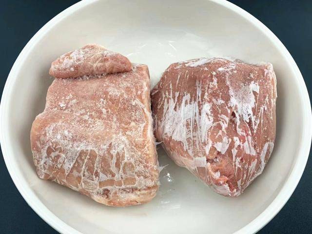 【做法】:先將醋、食鹽放入到冷水中,然後放入凍豬肉,大概6分鐘後,豬肉就解凍了,解凍時,常溫解凍就行,不需要任何處理。