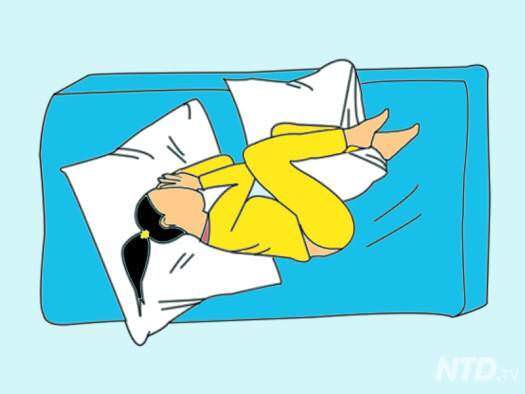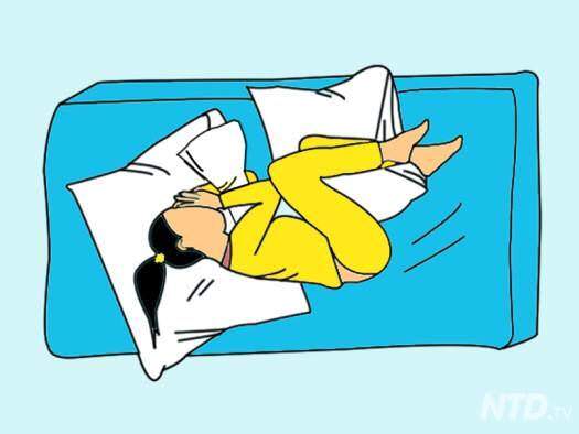 肩痛的朋友只要在肩不痛的那一邊側臥,彎曲雙腿,同時兩臂間放一個枕頭,或者是在兩腿間夾一個枕頭也是不錯的方法!