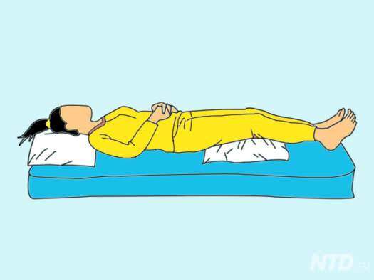 你還在因為背痛而讓你睡得不安穩麼?只要你在膝蓋下麵放一個枕頭,同時在腰部放一個卷好的毛巾,保證你一覺睡到天亮!