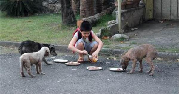 菲律賓有位九歲的小男生Ken,每天都有段時間跑得不見蹤影。幾個星期下來,爸爸覺得很困惑,有次終於忍不住跟蹤Ken,這才發現一個令人感動的行為!原來Ken一直以來都默默在喂食流浪狗。  Ken今年十歲,住在菲律賓南方,從小就非常喜歡小動物。 年僅八歲時就畫下這張卡片,訴說拯救小動物的願望。  2014年二月,當時九歲的他常常跟爸爸報備一聲就消失不見。後來才發現,原來他一直以來都在偷偷喂食家附近的三只小流浪狗。從小就流落街頭,在外風吹雨淋、烈陽日曬、被欺負、餓肚子,讓三只小狗狗身體狀況非常差,滿身的汙穢和皮膚病。Ken一點也不在意,還和他們建立起深厚的友誼。