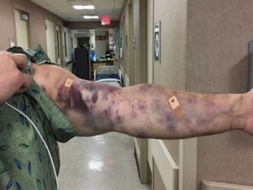 才過沒幾小時,他的手臂竟然出現一塊一塊的瘀青,而且疼痛到無法忍受!