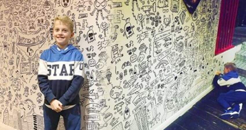 大家小時候喜歡塗鴉嗎?下麵這個叫Joe Whale的9歲男孩就很喜歡,平時上課走神的時候,他會在書本上隨便寫寫畫畫。老師看到後批評他,希望他認真聽課,他也非常沮喪。但Joe的父母很支持他的創造力,還鼓勵他去上繪畫課。