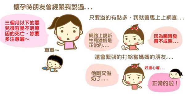 仁小時候非常容易溢奶,有時溢出來的奶大概是他剛剛喝的一半的量!有一次還用噴射的,從鼻子噴出來…!我也有拍嗝啊!我也有抱直的抱好幾分鐘啊!但他還是溢奶溢的非常誇張。 書上說正常、網路上說正常、朋友媽媽說正常,但我去打預防針時還是會一直問醫生!  就連大便我都會很仔細的看有沒有異常!  當父母的就是這樣,一輩子都在擔心孩子!就像我現在已經是媽了,我爸還是常常在擔心我。擔心我眼睛、不好擔心我太胖、三不五時就一直叫我去運動。但又擔心我沒錢吃自己想吃的!  【寵物。育兒。