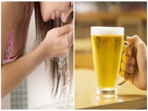 水加啤酒,洗臉水裏加一小杯啤酒,雙手按摩至麵部微微發紅即可。