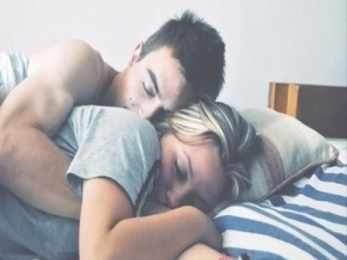 男人笑著說:「我喜歡抱著你,否則我睡不著.」