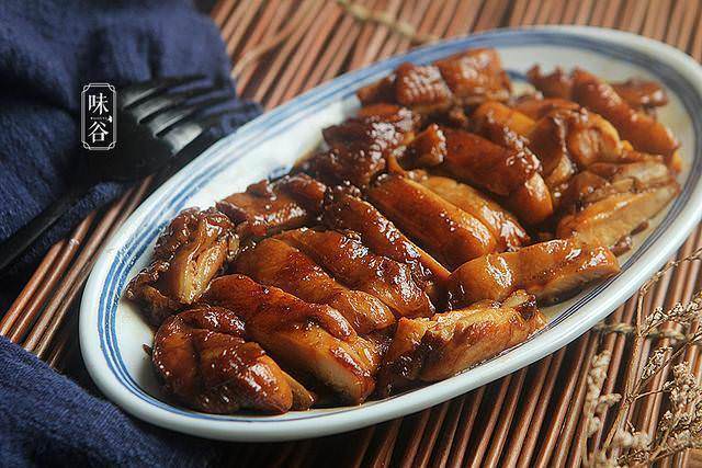9、關火後將雞肉切塊擺盤,淋上醬汁即可;