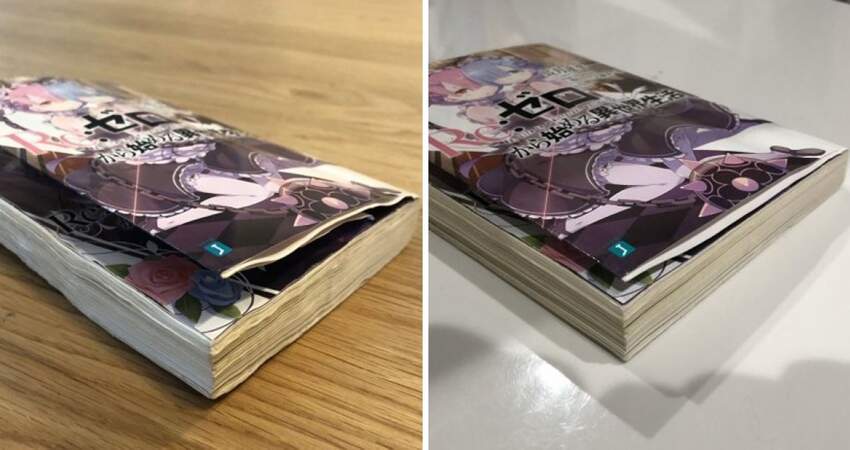 ▼這位網友以輕小說《Re:從零開始的異世界生活》舉例,他很喜歡這本書,但不小心將它浸濕了。接下來他用3個步驟,讓這本書恢復成原貌: