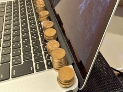鈴木秋則在Twitter上發文說,舊款MacBook Pro的過熱問題讓很多人困擾,其實用一個很簡單的方法就可以解決。只要像圖中顯示的那樣,把硬幣疊起來橫排擺放在鍵盤的最上方,也就是與屏幕連接的位置附近,就可以為MacBook Pro散熱。因為硬幣所採用的銅有非常好的導熱性,能有效的為機身散熱。
