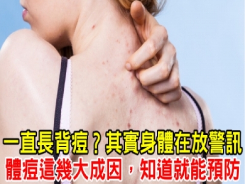 當我們的毛囊及皮脂腺阻塞或發炎時就會產生痘痘,而人類身上除了手掌及腳掌沒有毛囊外,全身上下都有毛孔,有毛孔的地方就有可能長痘痘。而大家應該都有發現背上的痘痘總是特別難痊癒,因為其實它就是你的身體正在對你釋放的健康警訊!一起來看看如何預防吧!