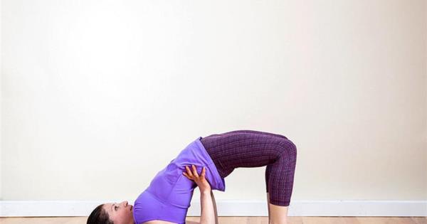 1.躺下後將雙腳彎起,讓腳跟盡可能接近臀部。 2.手可以擺在身體兩側撐住地板,或是像圖中示範撐在腰部都可以。 3.撐起身體保持五個深呼吸。  這個動作可以幫助伸展後背還有臀部。 1.保持躺下的姿勢,讓膝蓋向身體彎曲。 2.雙手抓住腳板並向身體兩側下壓,停住五個深呼吸的時間。 3.坐起來後再重複一次。