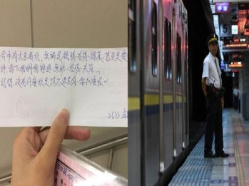 剛好被車長發現,車長在她下車時在紙條上寫下: