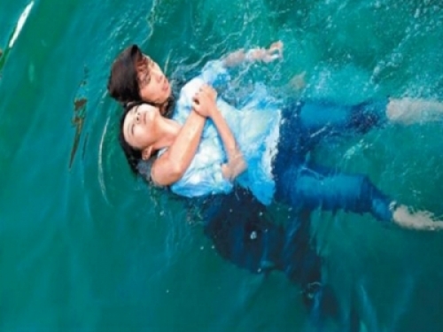 患有近視的那位也饃饃糊糊地看到了。於是,兩人便鼓起勇氣,奮力向小船遊去。