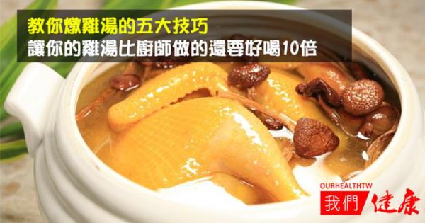 四、火候—猜大猜小 燉雞湯應先大火約10分鐘燒開再轉文火,開的程度應掌握在似開非開,因為砂鍋有很好的保溫功能,若等沸騰時再調小火,它的後繼沸騰過程對湯品的“鮮”是一個損失。 而且這10分鐘裡千萬不要揭蓋,“跑氣”了的湯就沒了原汁原味。  五、放鹽的學問 對於燉湯來說,這還是個不小的問題。放鹽的時間在某種意義上能主宰湯的口味。不管是有的人說下鍋時就放鹽,還是半熟時放,都不對。 鹽煮長了會與肉類發生化學反應,肉類裡的蛋白質被鎖定,湯味淡,肉也燉不爛。那麼鹽該何時放好呢?記住了,鹽和別的調味品一定要在湯已燉好時放。 放鹽後轉大火10分鐘再停火,中途不揭蓋,不光味道全進去了,而且湯味更濃。注意,放鹽進去後不要攪拌,那會留下一股生鹽味。  燉雞湯的細節 很多人家裡一燉雞湯,就會香飄四溢,老遠就讓人聞到了雞湯的香味,這是燉湯的大忌。