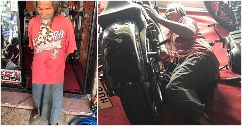雖然大家都說「不可以貌取人」,但社會上真正能做到的人真的少之又少!過去,泰國有一位衣著破爛、打扮邋遢的老伯伯,上門到男人夢幻逸品「重機店」逛逛,過了很久他都沒有要離開的意思…