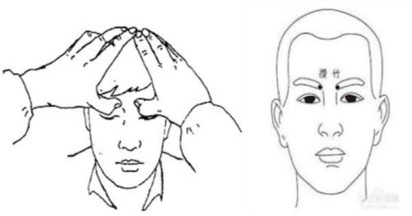 其次以雙手拇指揉按兩側太陽穴或壓痛點至酸脹30次。