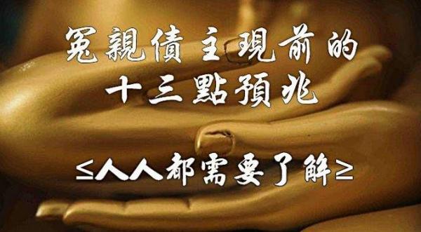 自然因果律的釋放,冤親債主的索債尋報,會在我們身內和報身環境周圍,呈現出哪些預警期的征兆呢?依據許多大德的觀察與總結進行綜合分析,這些前期的預警征兆,可歸納整理成十三個方面。